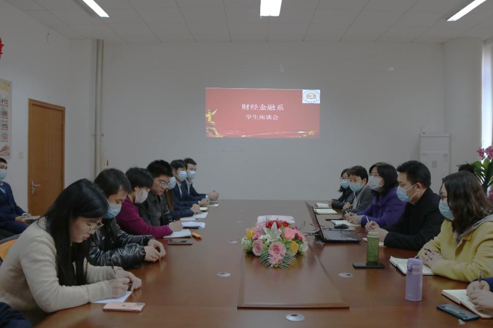 为进一步深化“我为群众办实事”实践活动,全面了解在校学生的学习和生活,畅通系部与同学们沟通交流渠道,更好地秉持“以学生为中心,为学生服务”的宗旨,结合期中教学检查,11月16日,财经金融系在综合楼401会议室召开了学生座谈会。会议由系主任董红和党总支书记齐学民主持,系干部、教研室主任、辅导员及学生代表参加。