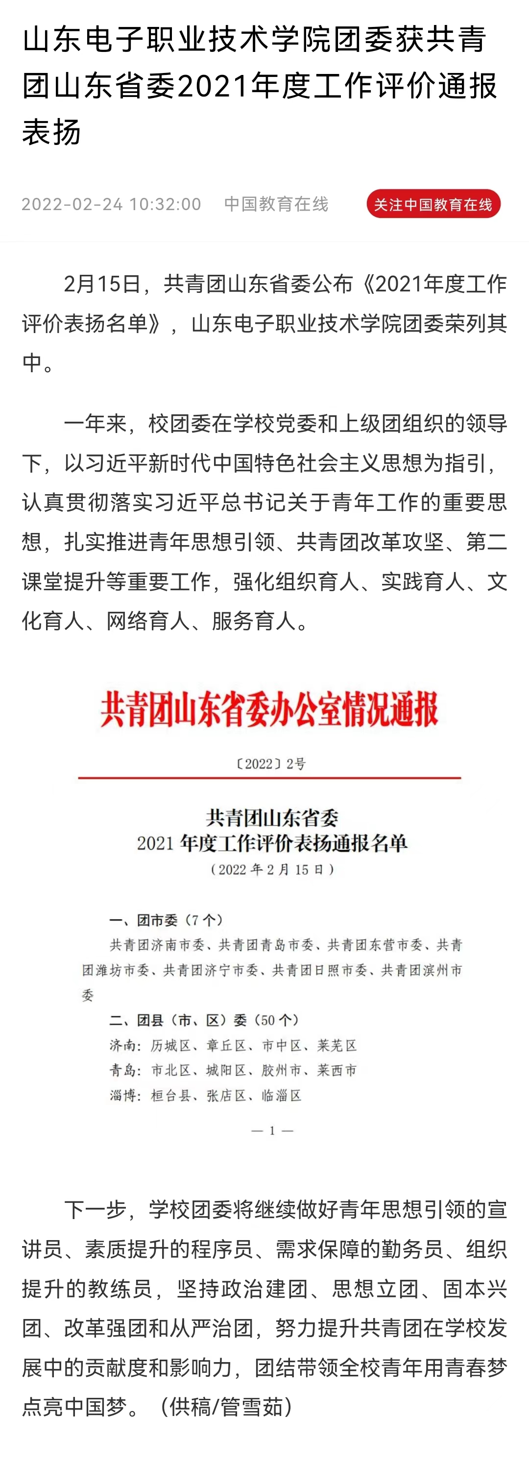 【中国教育在线】山东电子职业技术学院雷锋电子e工服务队获得“山东省青年志愿服务先进集体”荣誉称号