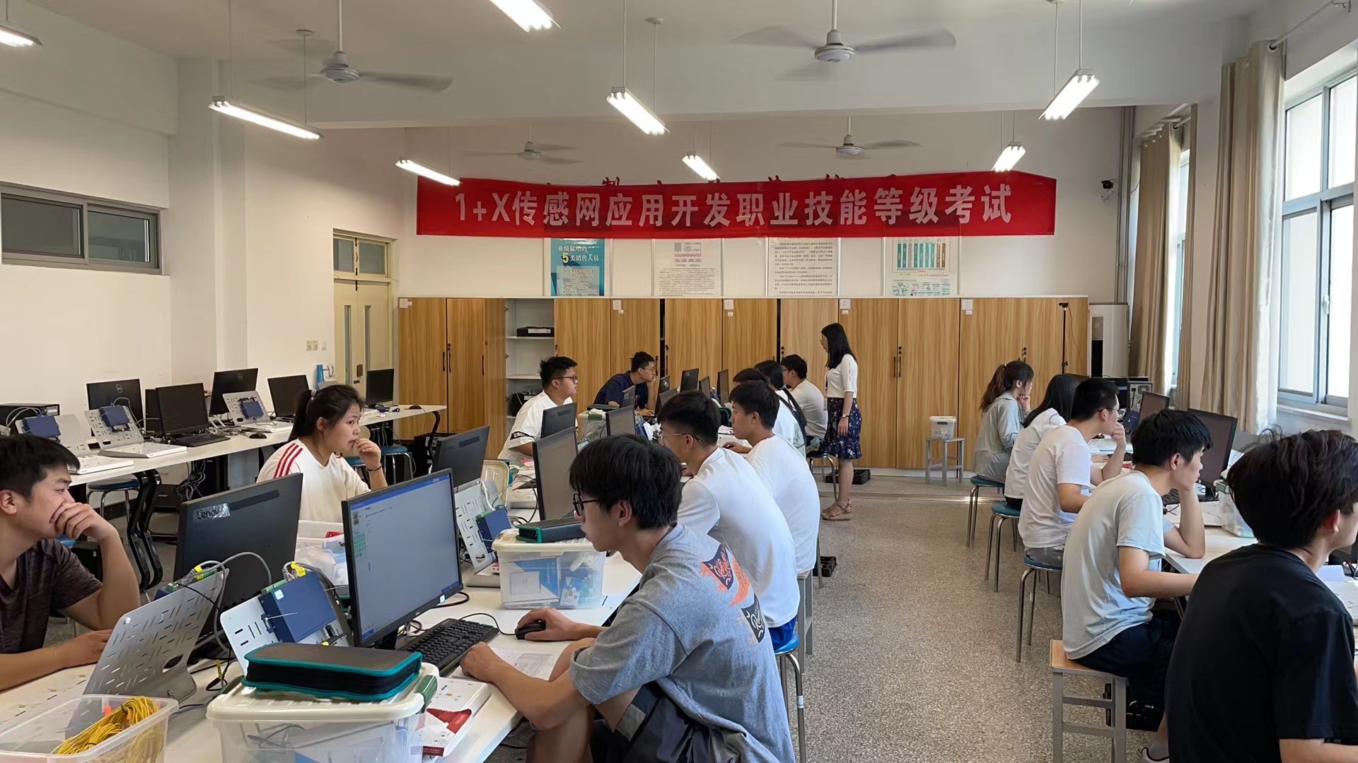 2022年6月19日,在电子与通信工程系老师的共同努力下,在培训企业及学校等相关部门的大力支持下,我校第三批“1+X”传感网应用开发职业技能等级(中级)证书考试工作圆满落下帷幕,来自物联网应用技术、电子信息工程技术等4个专业的50名学生参加了本次考试。
