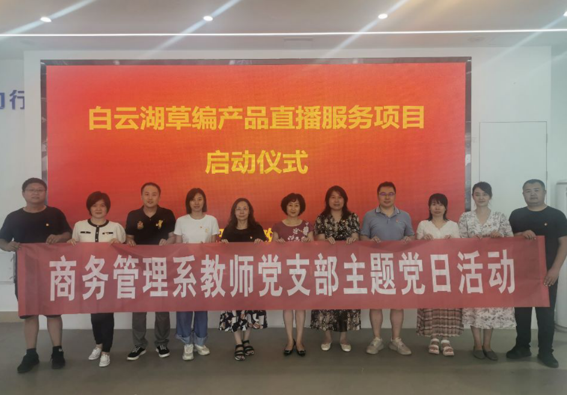 6月25日,商务管理系教师党支部在数字商贸流通产业化公共实训基地开展“白云湖‘非遗草编’产品直播服务项目启动”主题党日活动。本项目是商务管理系教师党支部与章丘区白云湖农业技术服务部支部委员会共建项目,商务管理系教师党支部借助电子商务类专业优势,以义务服务区域特色产品互联网营销为重点,通过“短视频+直播带货”等形式,吸引粉丝点赞关注,宣传白云湖非遗草编特色产品,拓展白云湖非遗草编产品网销途径。