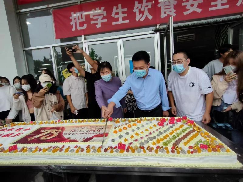 我校餐饮中心制作大蛋糕,在校师生共同为祖国庆生