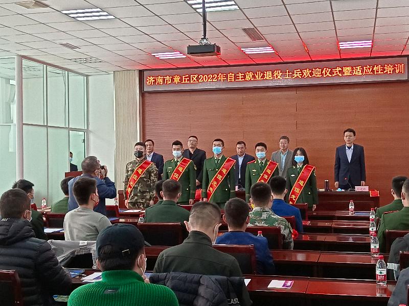 为贯彻落实好省、市关于2022年自主就业退役士兵退伍返乡相关工作精神,帮助退役军人尽快适应角色转换并融入到地方社会发展,提高开拓创新意识。章丘区退役军人事务局联合我校举办2022年自主就业退役士兵退伍欢迎仪式暨适应性培训。