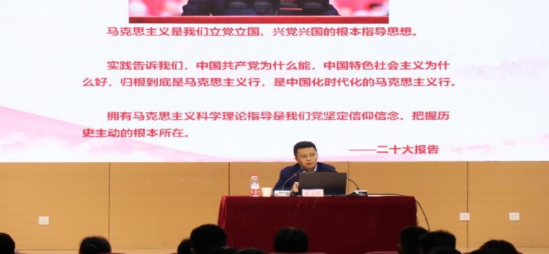 近日,学校2022年青马工程培训班持续进行,第二场培训由学校副院长李卫东主讲,主题为“中国化时代化的马克思主义为什么行”,学校辅导员和180位青马学员参与集中培训学习。