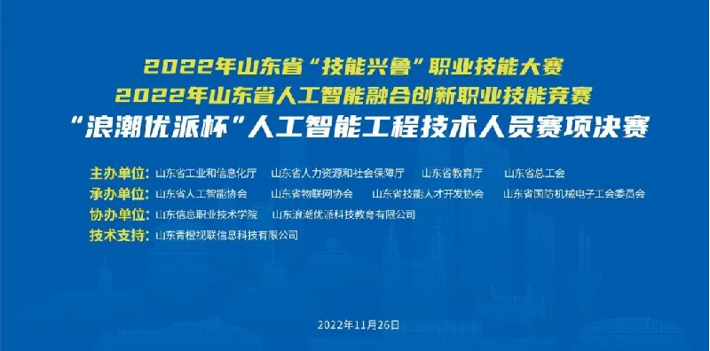 11月26日,山东省“技能兴鲁”职业技能大赛——人工智能工程技术人员赛项决赛在山东信息职业技术学院举行,经过激烈角逐,我校人工智能技术应用专业2021级学生庄士诚、张诗羽获得学生组一等奖第二名,指导教师杜柠、常英丽获优秀指导教师称号。