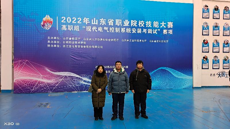 12月24日,2022年山东省职业院校技能大赛(高职组)“现代电气控制系统安装与调试”赛项在日照职业技术学院落幕。全省37支参赛队74名选手参赛,由我校智能制造工程系刘文臣、马爱君老师指导,王浩然、刘少艺同学组成的参赛队获得三等奖。