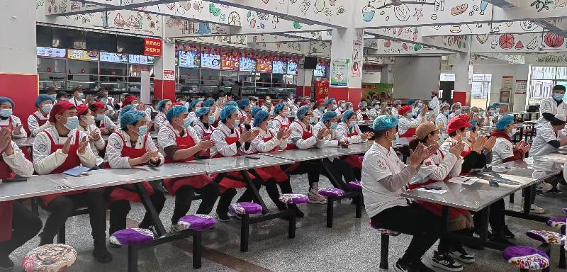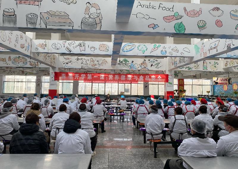 为进一步提高学校餐厅从业人员综合素质,强化食品安全意识,规范食品操作行为。2月13日下午,餐饮中心邀请章丘区市场监督管理局餐饮监管科副科长张雪青开展春季开学第一课,以“营养健康与食品安全”为题对从业人员进行培训。餐饮中心全体教职工及各餐饮公司100余名从业人员参加了此次培训。