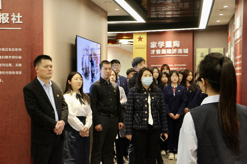 走进展馆,师生们在一幅幅照片、一件件实物、一座座雕塑前驻足,仿佛回到了那段艰苦卓绝、波澜壮阔的峥嵘岁月。在解说员的倾情讲解下,大家从“家学熏陶、才情轰动济南城;投身革命、奔赴抗日前线;革命情侣、战火中的爱情之花;转战大青山、血洒沂蒙山区”等多个篇章重温了辛锐烈士年轻短暂而又伟大壮烈的一生,接受了一次生动而深刻的党性教育。