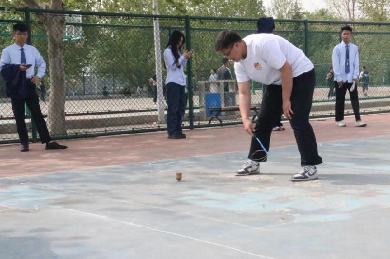 本次活动设有踢毽子、跳绳、丢沙包、抽陀螺、滚铁环五个趣味横生的项目。这几项民俗体育项目颇有“年代感”“历史感”,同学们边体验民俗运动的快乐,边交流自己小时候玩儿过的那些游戏。参赛者个个神采奕奕、灵活敏捷,憋足了劲儿,脸上都表现出了志在必得的信心。现场观众更是不甘示弱,加油声、呐喊声、欢笑声此起彼伏,一阵比一阵响。整个场地呈现出一片阳光、快乐、健康、向上的景象。(计算机与软件工程系 王文静)