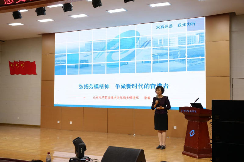 商务管理系主任李敏、党总支副书记刘蕾及相关师生代表共300多人参加了首次活动—劳动精神宣讲会。宣讲会上,计算机与软件工程系赵国玲教授、商务管理系主任李敏、商务管理系新媒体营销教研室主任刘春艳、商务管理系辅导员刘延毅、商务管理系学生会主席李学元用真挚的语言、饱满的情感,声情并茂地为大家从不同角度分享了各自的成长历程、先进事迹和心得感悟,生动诠释了新时代劳模精神、劳动精神和工匠精神,唱响了劳动最光荣、劳动最崇高、劳动最伟大、劳动最美丽的时代主旋律。