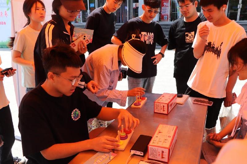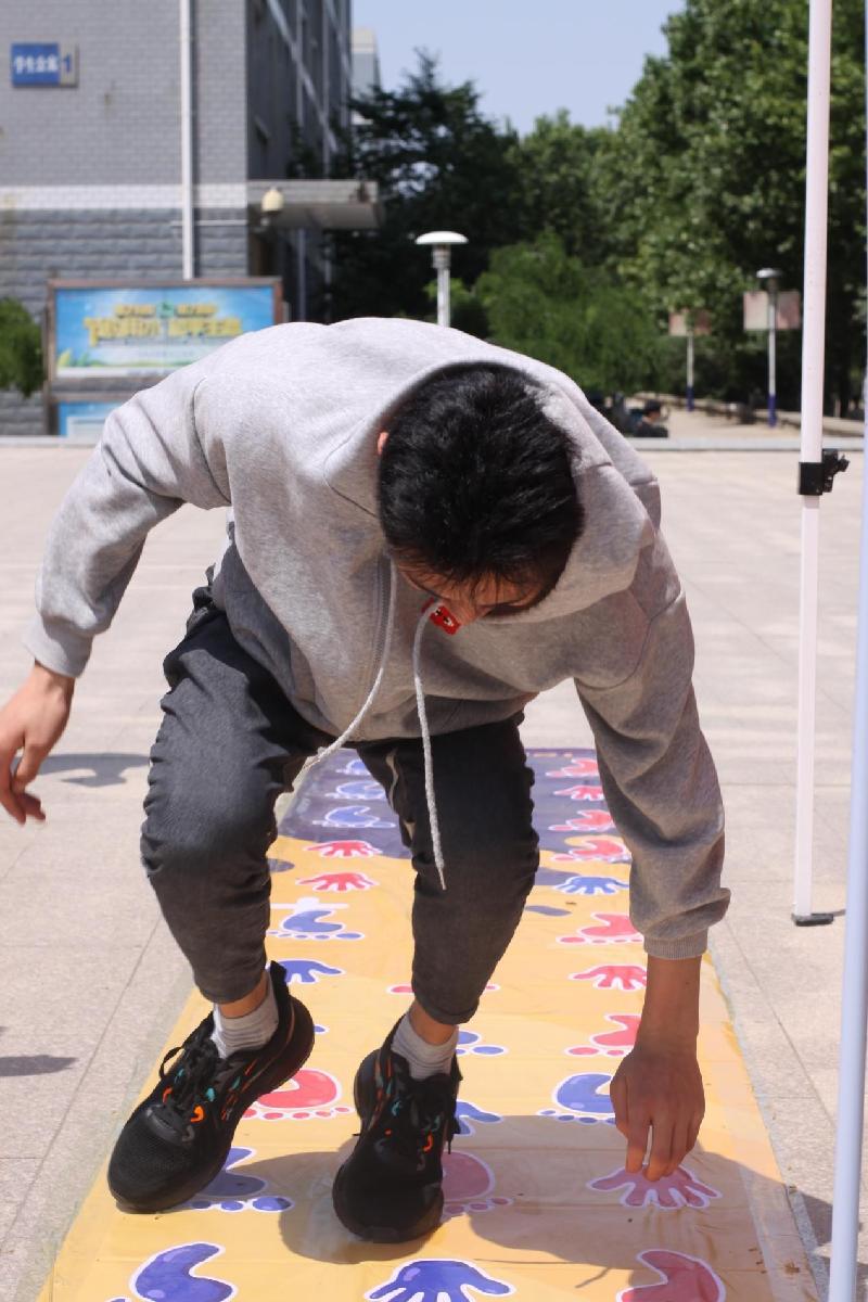 本次活动主题为“珍爱生命、拥抱阳光、心向未来”。活动现场,设置了活动打卡区、心理咨询体验区和展板留言区。在活动打卡区,同学们手持心理游园卡,完成投壶游戏、指压板跳绳、12秒手脚并用挑战、汉诺塔游戏、诸葛帽吃糖等活动后即可得到精美礼品。同学们参与的热情积极高涨,在挑战性和趣味性的活动中放松身心,缓解压力,疏解不良情绪,收获了欢声笑语。