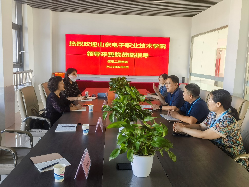 6月8日,李敏一行前往潍坊职业学院调研交流,信息工程学院院长徐希炜等热情接待,双方分别简要介绍了学校及院系的基本情况,针对专业群建设、人才培养模式创新、产教融合、校企合作、技能大赛等进行了深入沟通和交流,随后参观了信息工程学院的虚拟仿真实训中心、创新创业中心、协同创新中心等。潍坊职业学院的特色做法、专业群规划建设、实训室建设、校企合作等方面值得我们学习和借鉴,双方期待今后加强交流合作,共同发展,携手并进。