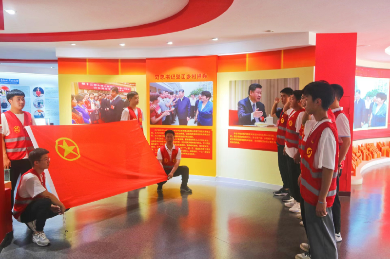 近年来越来越多青年学生选择回到三涧溪建设三涧溪,三涧溪村村两委中也有两位是“90后”的青年。通过研学参观,同学们真切感受到了乡村振兴离不开实干,更离不开青年一代接过振兴接力棒。面向未来,智造学子纷纷表示选择接过乡村振兴的大旗,牢记嘱托,挺膺担当,勤学苦练,掌握技能,为建设美丽富饶的乡村奉献青春与智慧。最后,实践队成员们面向团旗,重温入团誓词,郑重宣誓。(智能制造工程系 辛德平)