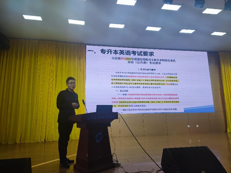 为更好地帮助山电学子提高升本认知、了解升本政策、明确复习规划。12月8日下午,“山东省2024年专升本考试要求”专题讲座在学术报告厅顺利开展,此次讲座由基础教学部康燕、张书玲、程爱朋和计算机与软件工程系陈双主讲,为同学们详细解读了各科目的考试要求及备考策略、答题技巧,2022、2023级有300余名学生积极参与。会议由基础教学部教学科长孙艳婷主持。