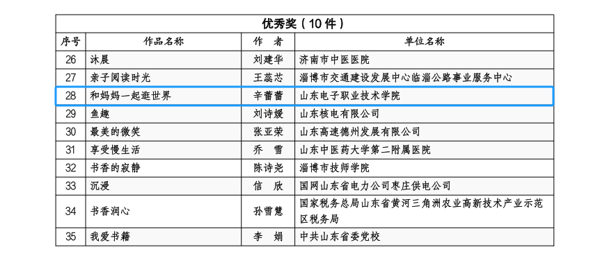 近日,在山东省总工会主办的“玫瑰书香”女职工主题阅读活动中,我校教师辛蕾蕾的摄影作品《和妈妈一起逛世界》荣获摄影作品类优秀奖。