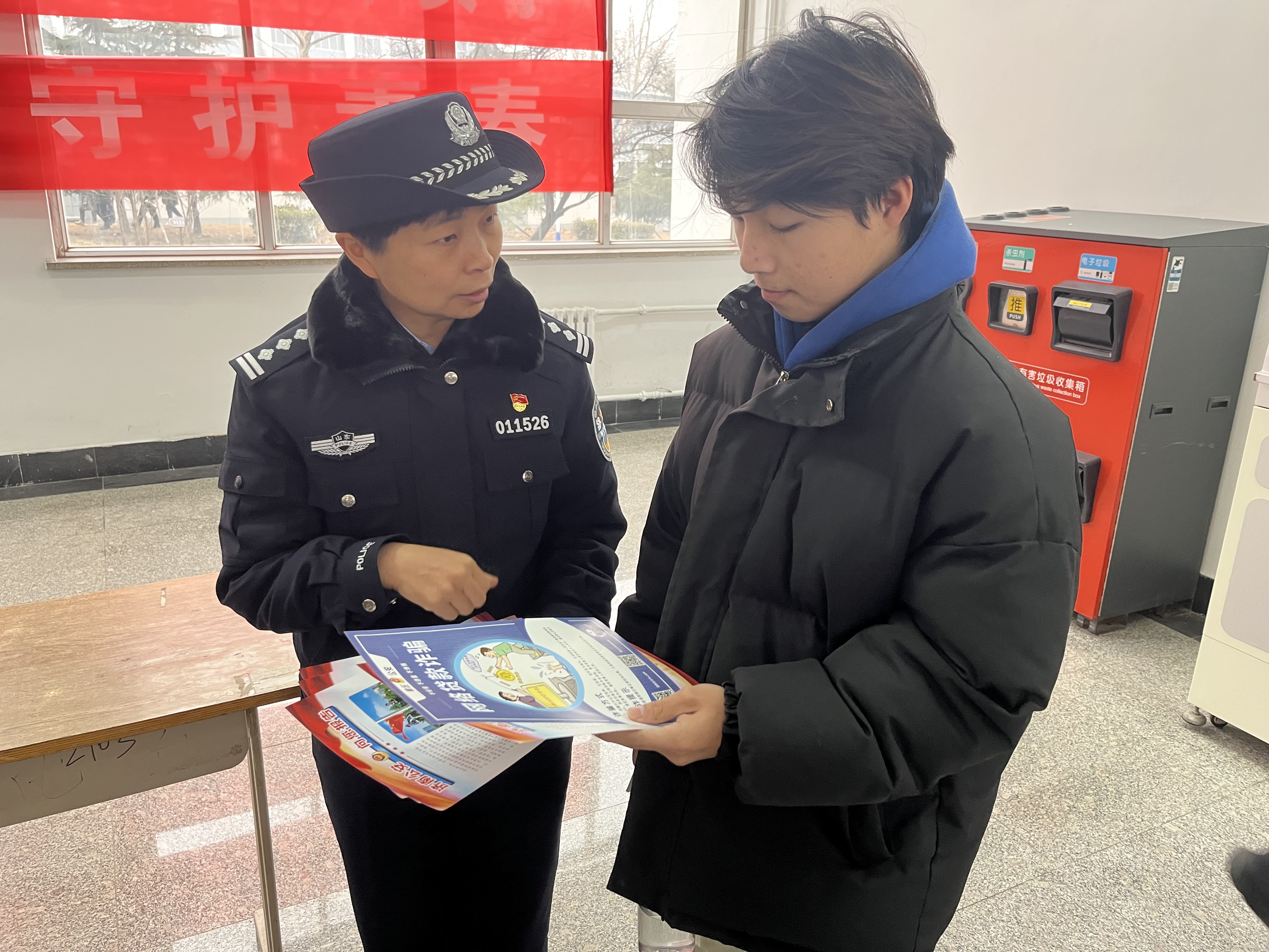 随后联合共建单位双山第二派出所来到我校,对在校大学生进行反诈普法宣传。在宣传活动中,派出所副所长林少喻用通俗易懂的语言,从防范电信网络诈骗、交通安全等方面开展宣传教育.活动现场,民警与我们的义警队员通过发放宣传资料、解答学生咨询等方式,向学生大力宣传如何预防交通事故、防电信诈骗、冬季消防安全等知识,有效提升学生对“110”的认识,使同学深入了解了公安工作并提高法治意识、防范意识、安全意识和自我保护能力。