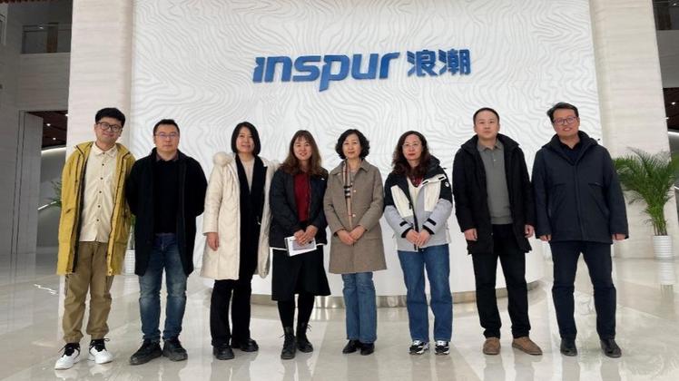 在浪潮智能终端有限公司交互显示事业部总经理李娜、技术负责人的陪同下,一行人参观了浪潮自主研发的虚拟现实终端数字人在AI电商直播本地生活领域的应用。双方就智能终端应用、学生认知实习、AI数据运营师职业鉴定等方面进行了座谈交流并达成了共识。