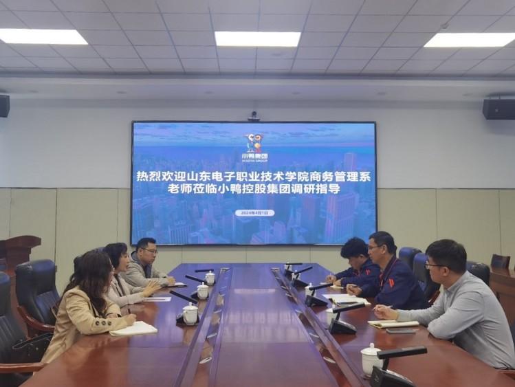 在小鸭集团调研时,小鸭集团人力资源部部长李学清、小鸭智能电器有限公司副总陈晨、小家电电商事业部部长赵腾龙等相关领导热情接待,并陪同参观了集团的展示厅和电商事业部,详细介绍了小鸭集团的发展历程、技术创新、产品布局和市场拓展等情况。李敏介绍了商务管理系的专业布局和建设情况。双方就人才培养、实习就业、师资队伍、科研合作等方面进行了深入交流,均表示愿意建立长期稳定的合作关系,实现资源共享、优势互补。双方还就未来合作的人才订单培养、师资互聘等具体方向和内容进行了深入探讨,达成了多项合作意向。