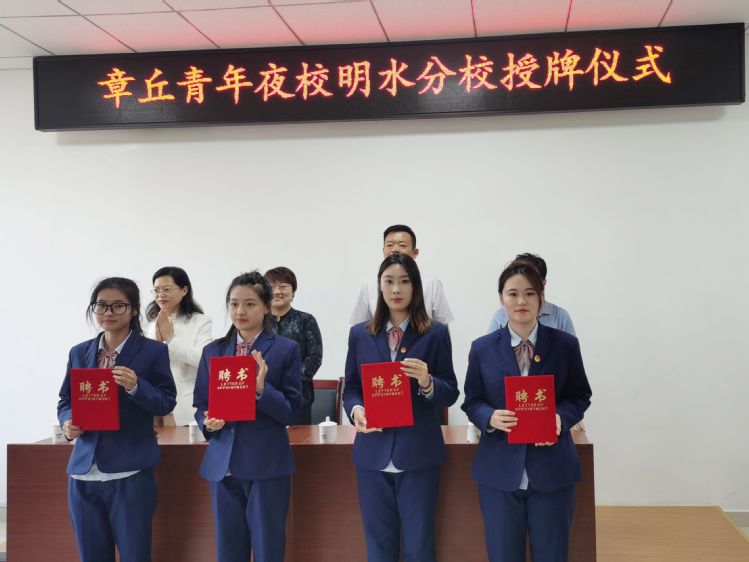 4月26日下午,章丘青年夜校明水分校授牌仪式暨明水建功突击队成立活动在明水街道眼明泉社区成功举办,数字财经学院淑女学堂成员作为讲师团代表受邀参加。