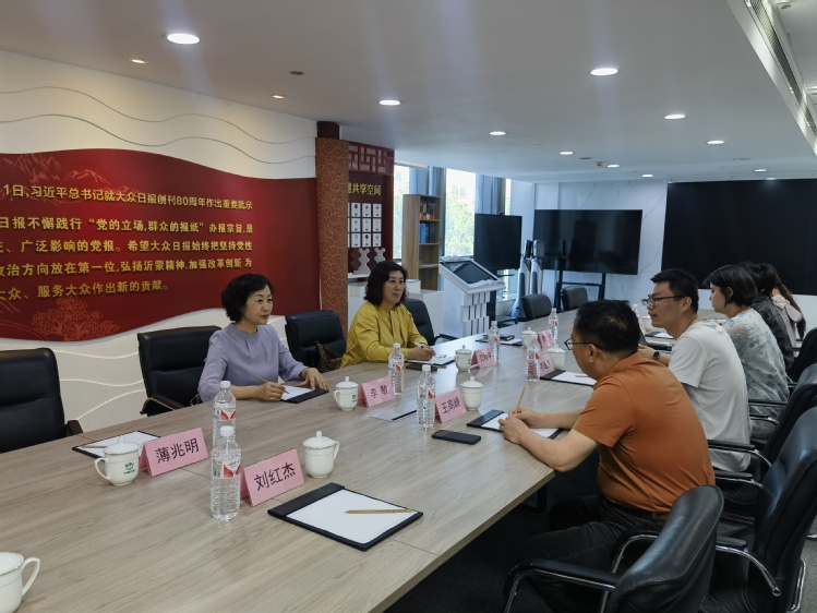 在山东齐鲁农超科技有限公司董事长刘红杰陪同下,李敏一行参观了“齐鲁农超”产品运营、直播销售、品牌文化等场所,对公司的发展历程有了全面了解。参观结束后双方进行了座谈交流,就下一步的深度合作达成共识。
