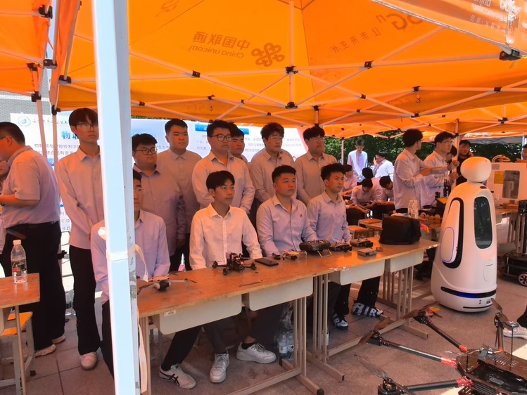 物联网与智能控制学院的无人机展区展示了先进的无人机技术,吸引了众多科技爱好者的目光。同学们纷纷围观,感叹科技的魅力。