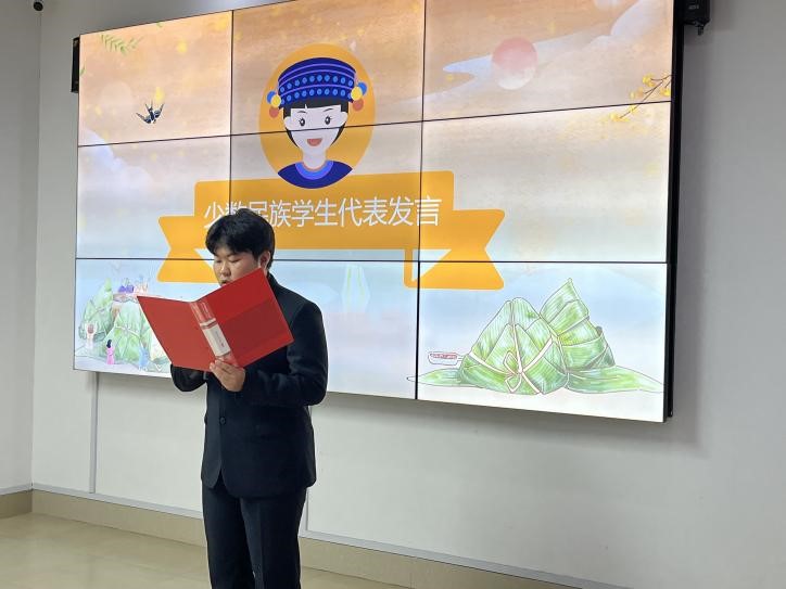 朝鲜族学生金泰旭用朝鲜语向大家送上端午节祝福,他讲述了在“民族之家”成长的故事,领导、老师们的亲切关怀,让他倍感温暖。