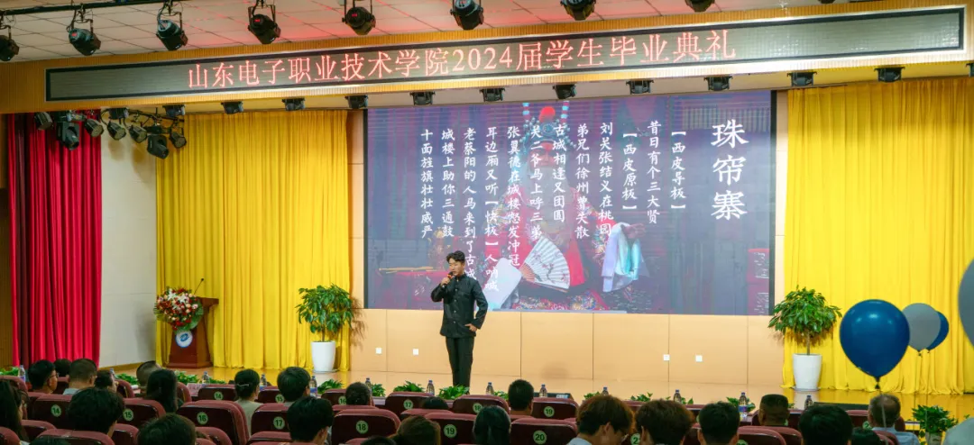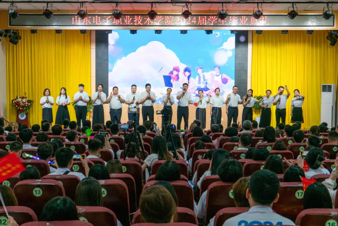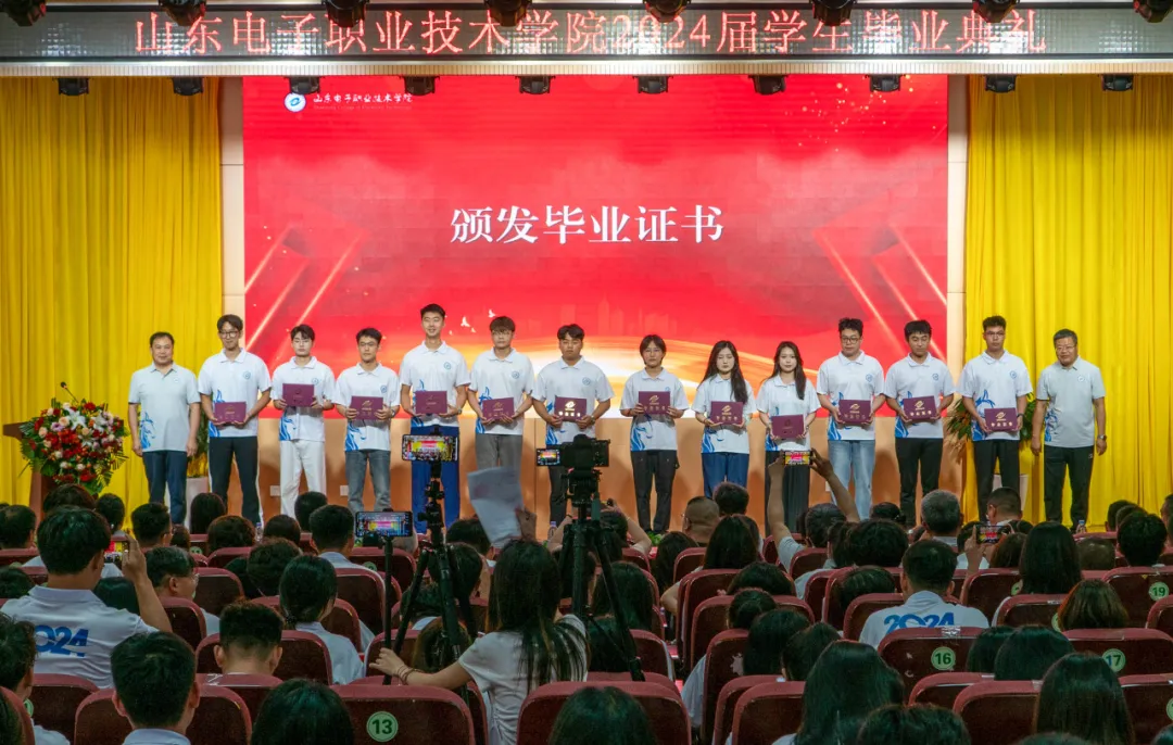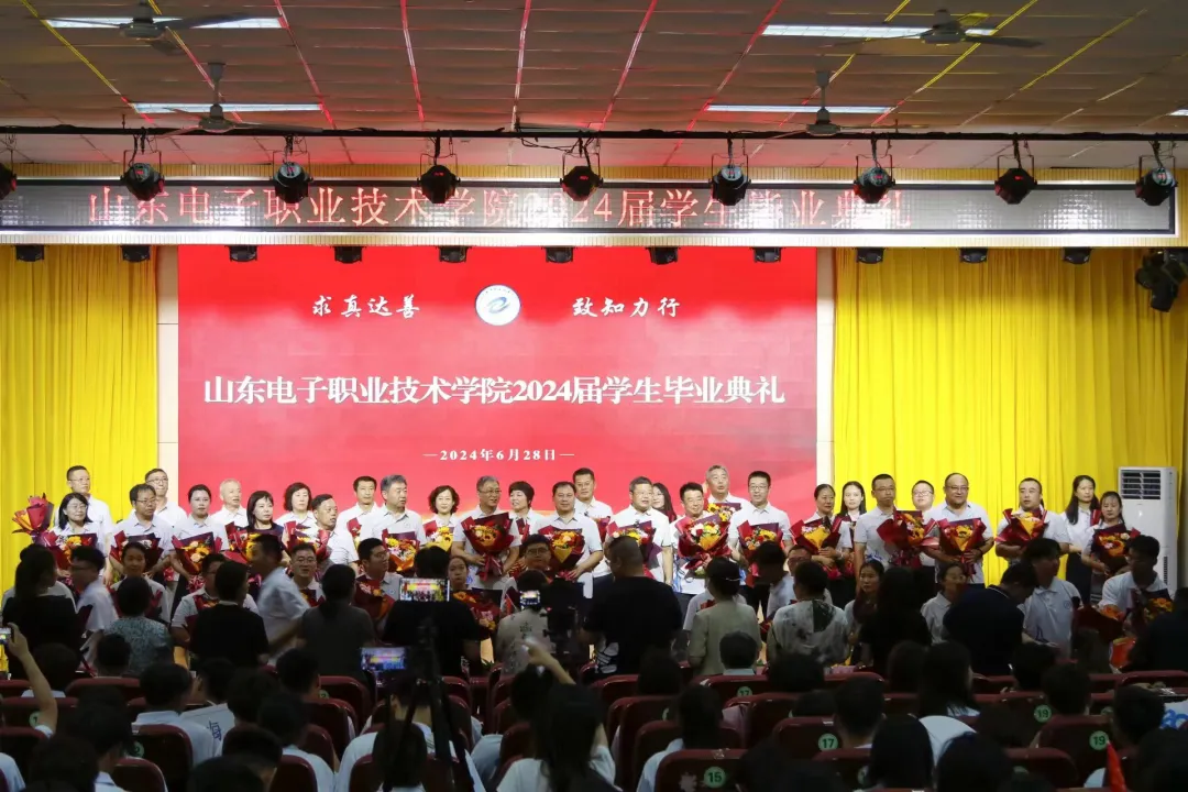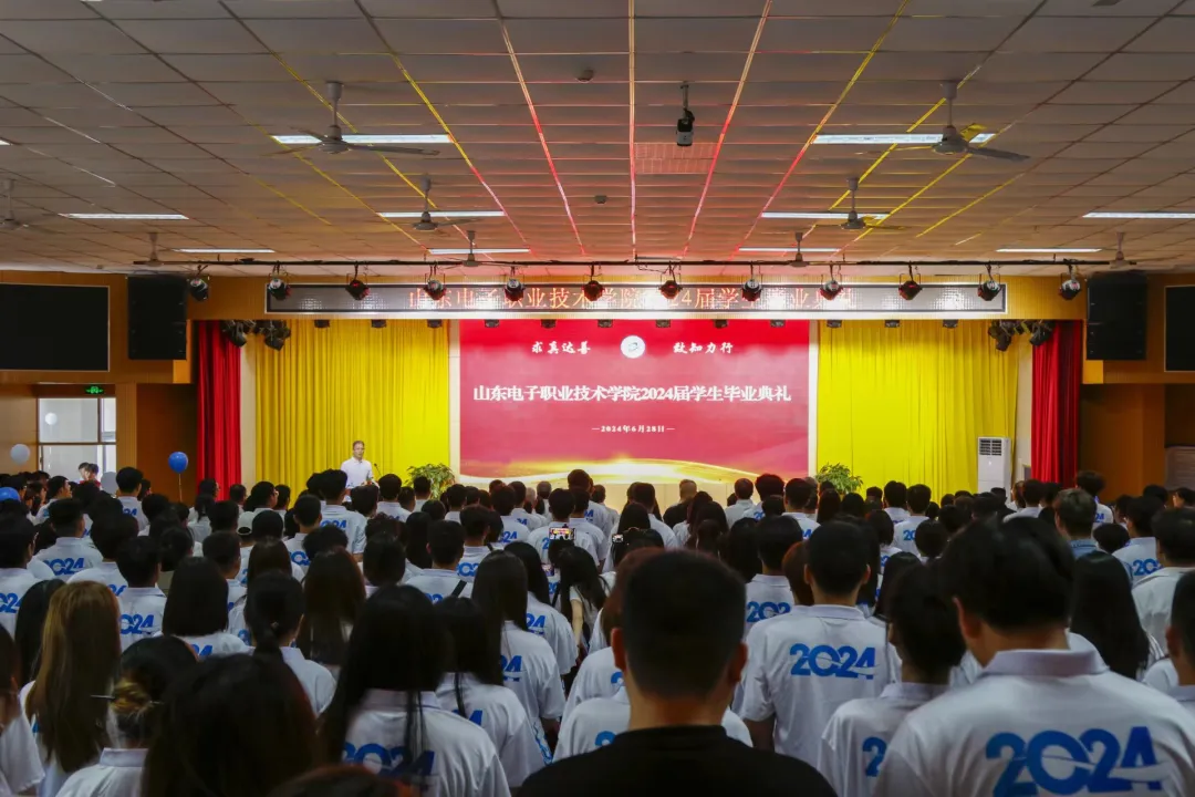 骊歌起仲夏,桃李又芬芳。2024年6月28日上午,山东电子职业技术学院2024届学生毕业典礼在学术报告厅隆重举行,学校领导班子、各院部和相关部门负责人、校友代表、家长代表、毕业班辅导员及教师代表等与毕业生们齐聚一堂,广大校友、亲友等通过现场直播在线观礼,共同见证3647名毕业生的荣耀时刻。学校党委书记毕丛福主持典礼,送上对全体毕业生的美好祝福。