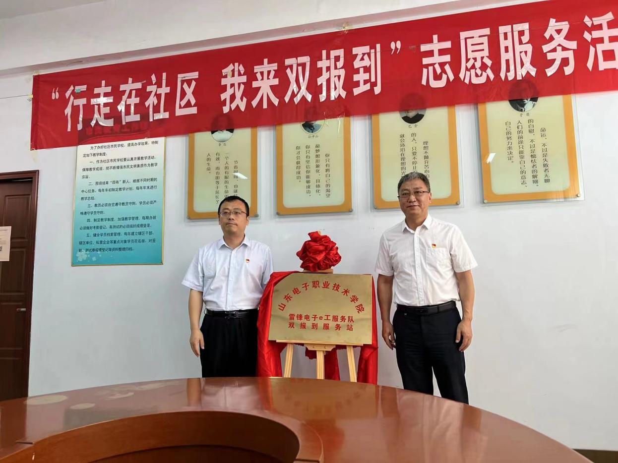 在明水街道明一社区,明水街道党工委委员、党建工作办公室副主任张雷,明水党建工作区副书记董辉参加座谈交流。毕丛福介绍了学校基本情况,提出学校将充分利用各项资源,持续加强与社区交流合作,把“初心”和“使命”融入工作全过程,用情用心用力帮助社区群众办实事、解难题,将“双报到”工作做深、做细、做实。明一社区党委书记刘章生介绍了社区开展党建联建、为民服务相关工作。会后双方举行了“山东电子职业技术学院雷锋电子e工服务队‘双报到’服务站”揭牌仪式。