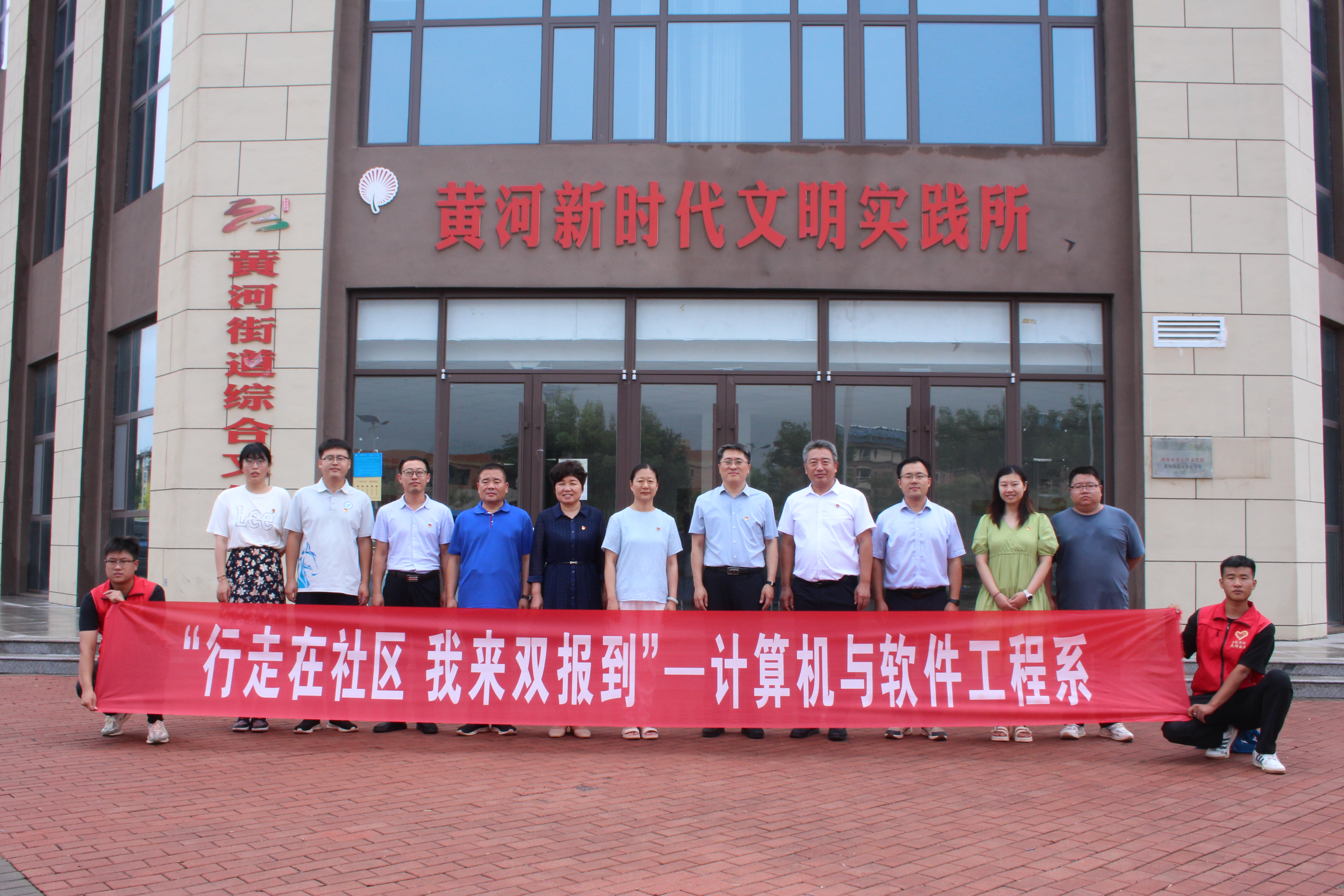 7月22日,我校宣传统战部部长聂莺,大数据与人工智能学院院长刘学、党总支书记王红一行来到章丘区黄河街道,与黄河街道工委会开展“党建共建、发挥合力、共赢未来”结对共建暨新时代大学生社会实践基地揭牌仪式,并看望在此开展暑期三下乡活动的师生。黄河街道党工委书记李建春,副书记、街道办事处主任郭增江,街道纪检监察工作委员会书记杨克泉,以及双方党团代表参加活动。