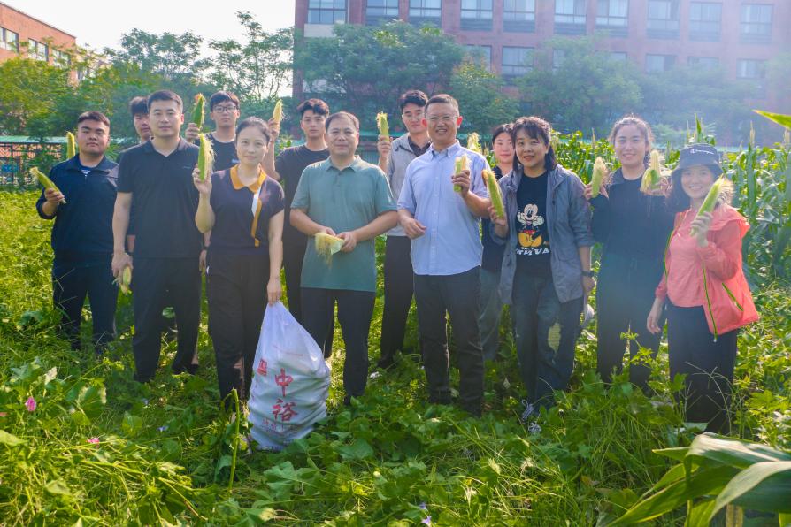 小秧苗茁壮成长为大茎秆,玉米在期盼中成熟。“开心农场”里化身为“开心农夫”的师生分工协作,装袋、运输,现场热火朝天。院长张建臣也加入到劳作行列中。看着粒粒饱满的玉米,他不禁感慨,真是“春种一粒粟,秋收万颗子。”“一粥一饭,当思来之不易;半丝半缕,恒念物力维艰。”