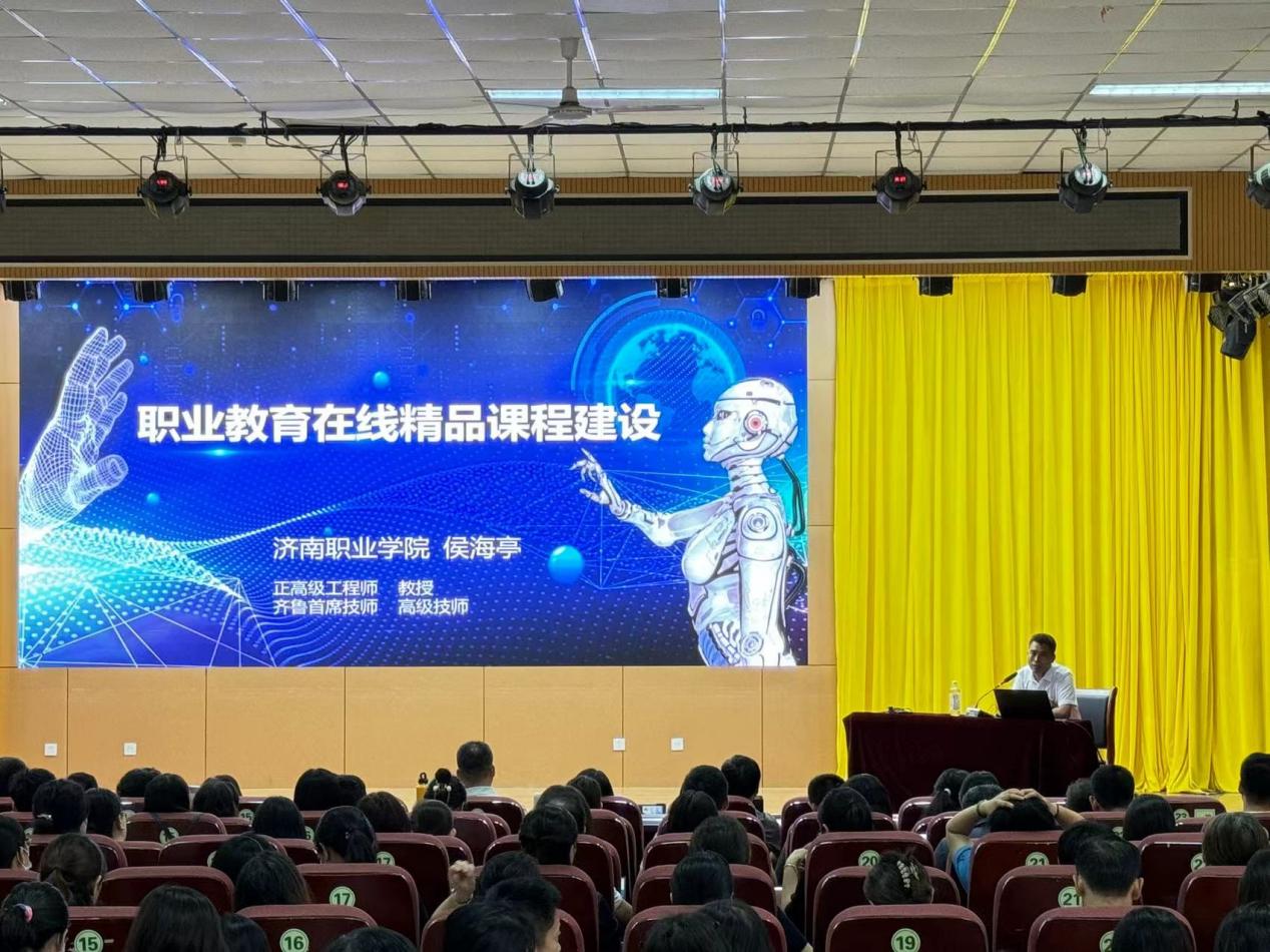 齐鲁首席技师、济南职业学院侯海亭教授以《职业教育在线精品课程建设》为题,针对在线精品课程的建设流程及成果培训,以《智能手机维修技术》课程为例,从政策解读、课程设计、内容制作、教学实施、课程申报等方面进行了全面而细致的讲解,为我校在线精品课程建设提供了专业指导与启发。