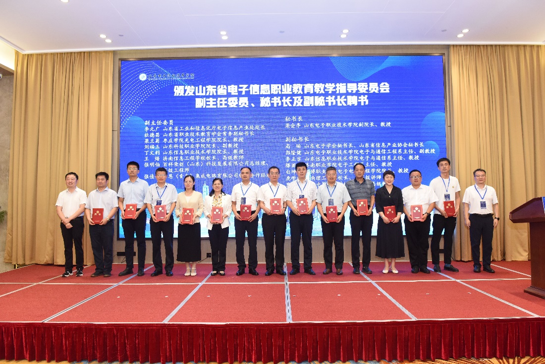 会上,宣读了山东省电子信息职业教育教学指导委员会、全国数字与智能化行业产教融合共同体、山东省信息产业协会信创工委会人才培养工作组成员单位名单并举行启动仪式,进行了聘书颁发与授牌。
