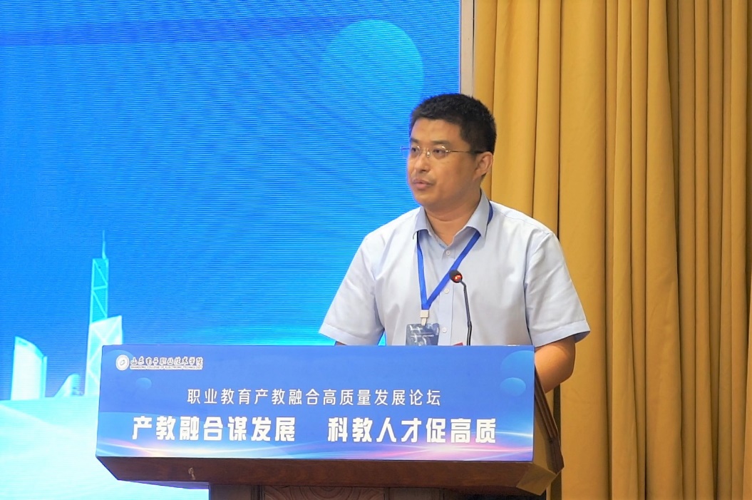 论坛还邀请百科荣创(北京)科技发展有限公司总经理张明伯作了《企业产教融合实践教育基地探索落实现代职业教育体系建设改革重点任务》主题报告,统信软件技术有限公司产教融合解决方案总监孙旭峰作了《职业教育高质量发展的内涵、路径和策略》主题报告。