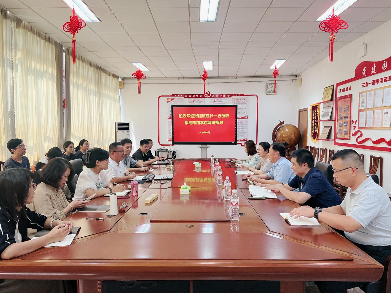 9月4日,学校党委副书记、院长张建臣到集成电路学院调研指导工作,与学院负责人和教师代表座谈交流。学校办公室、教务处、科研中心有关负责同志陪同调研。