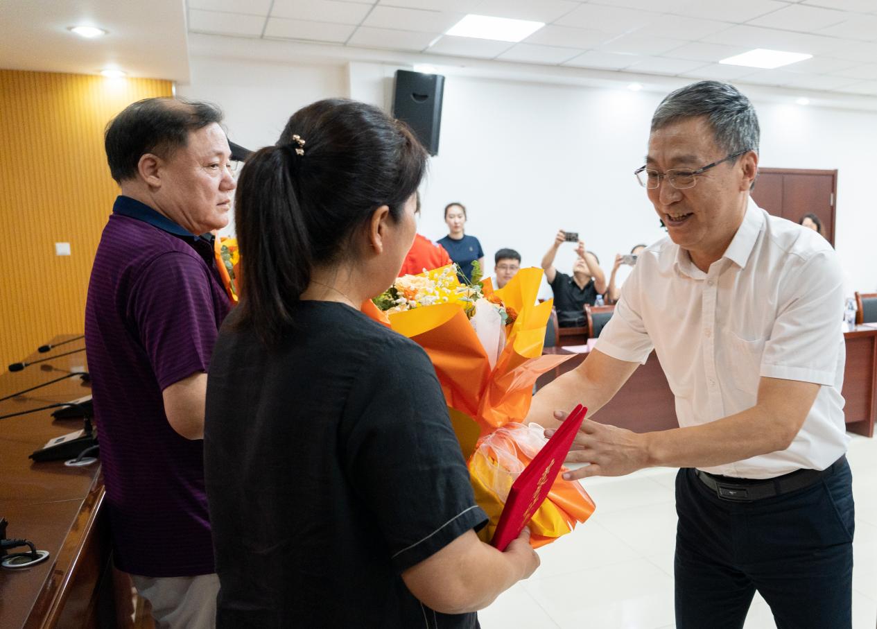 学校党委书记毕丛福为荣誉退休的教职工代表颁发了荣誉证书。院长张建臣对退休职工表达了崇高的敬意,对新入职教师表示热烈的欢迎。教师是立教之本、兴教之源。山电46年的发展历程,每一步脚印、每一项成就,都凝聚着一代又一代教职工的心血与智慧。荣休教职工是学校事业发展的亲历者、见证者,更是建设者、贡献者。学校会持续关心关爱退休教职工,积极为退休教职工办实事、做好事、解难事,为退休教职工奉献智慧、贡献力量搭建平台。学校领导对新入职教师提出希望,希望他们能以老一辈教师的品行为榜样,做“经师”与“人师”相统一的“大先生”,做广大学生成才成长的“引路人”,做严爱相济、润己泽人的“好老师”,为培养更多德智体美劳全面发展的社会主义建设者和接班人奉献青春和力量。