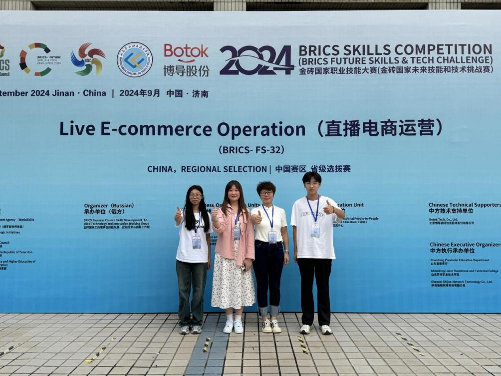 9月6日,2024年金砖国家职业技能大赛(金砖国家未来技能和技术挑战赛)直播电商运营赛项山东省协作组选拔赛在山东劳动职业技术学院长清校区顺利进行,经过理论和实操环节的激烈角逐,由数字商务学院魏湛冰、刘玉敬指导的参赛小队在41支参赛队伍中脱颖而出获得第一名,顺利晋级国赛。
