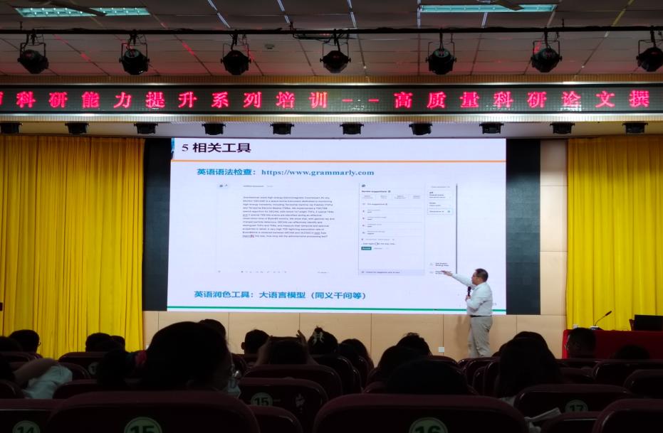 培训邀请德州学院赵一博士作《高质量科研论文的撰写》专题讲座,他从为什么要做科研和如何开始科研出发,聚焦文献阅读、研究选题、英文论文写作、文献管理工具和英文论文撰写工具使用等内容重点展开,介绍了Overleaf写作工具、LaTex语法介绍以及英语语法检查等功能,以期帮助老师们更高效地进行期刊投稿。