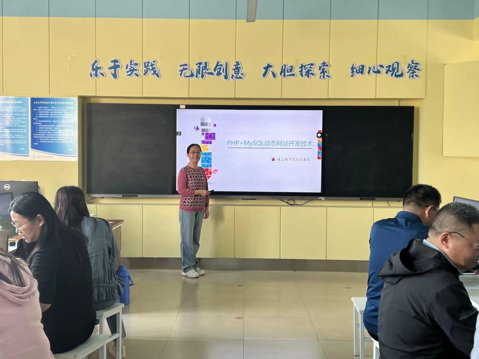 说课现场,党员教师代表进行了精彩的课程展示。潘军老师的《动态网站开发(PHP+MySQL)》,强调以项目驱动培养学生实践能力,从课程定位到教学内容、方法及考核,全方位展示课程体系。陈双老师的《C语言程序设计》,作为基础核心课程,注重语法与编程思维的培养,采用理论与实践结合的教学方式。许书君老师的《通信线路工程》针对通信专业,通过现场、案例、模拟教学让学生掌握工程技能。孟春艳老师的《计算机网络基础》则以多媒体等多种教学方法,使学生了解网络知识。