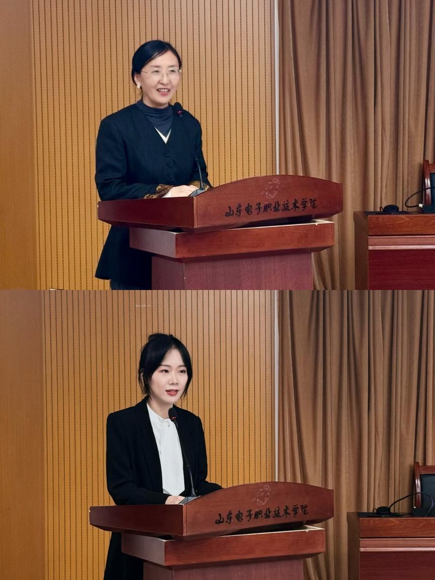 大数据与人工智能学院教师张雪华与思想政治课教学部教师林嵘作为指导教师和新进教师代表在会上发言。张雪华表示,作为师父一定会肩负起“传帮带”责任,尽职尽责、做出表率,带领新教师迅速成长。林嵘表示,作为新进教师会在师傅的带领下磨砺教学本领,提高综合素质,不辜负教师这个光荣职业。