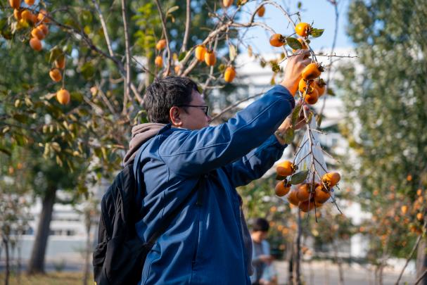学生工作处也组织各二级学院的辅导员、班主任和同学们一起走进“一站式”学生社区柿子园,在这堂生动的社区劳动实践课上,师生一同赏柿、摘柿,在硕果累累的季节放飞心情,品尝秋果的甘甜,感受劳动的乐趣,共同谱绘校园盛“柿”美景。
