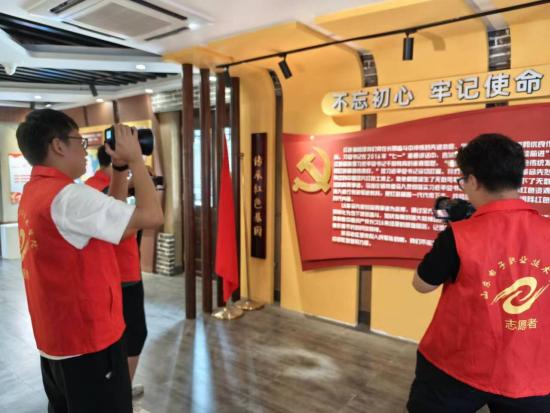 图为数字媒体专业学生在莱西市红色教育基地拍摄素材照片