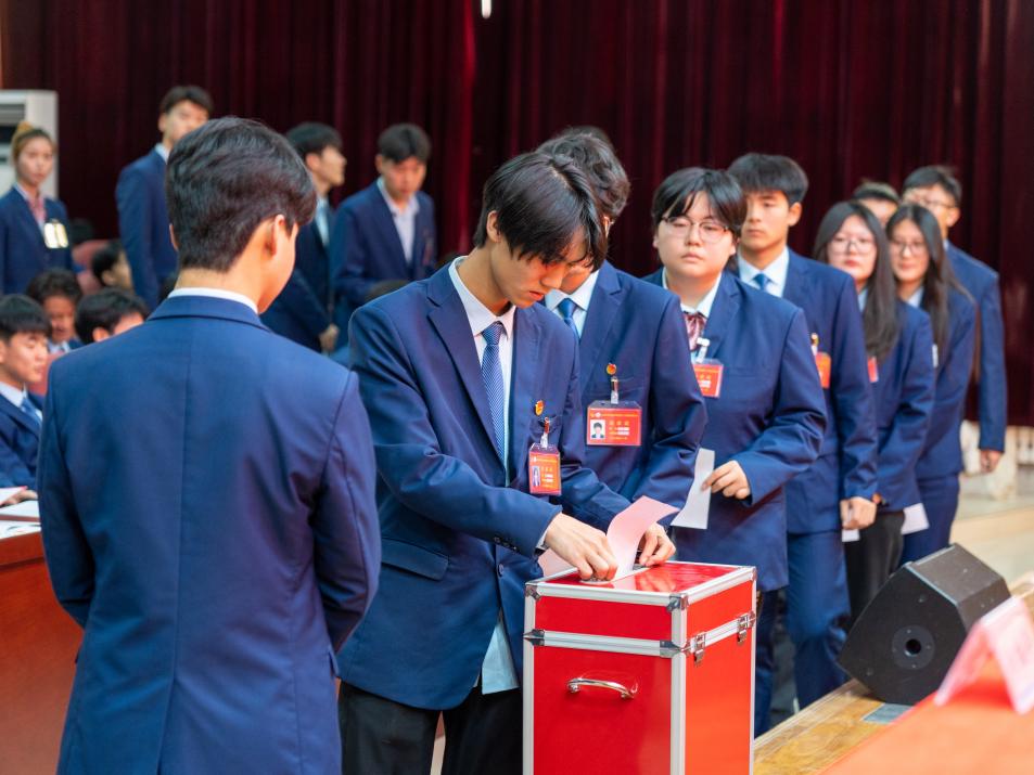 第十一届学生会主席徐榕辰宣读了学生会委员选举办法,经过候选人竞职演讲、投票计票、审议等环节,大会选举产生第十二届学生委员会委员及主席团。