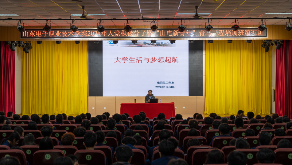 11月28日,2024年入党积极分子暨“山电新青年”青马工程培训班第五讲在学术报告厅举行,思想政治课教学部主任张同胜为青马学员授课,组织人事处、团委相关人员,各二级学院负责共青团工作的老师和全体青马学员参加。