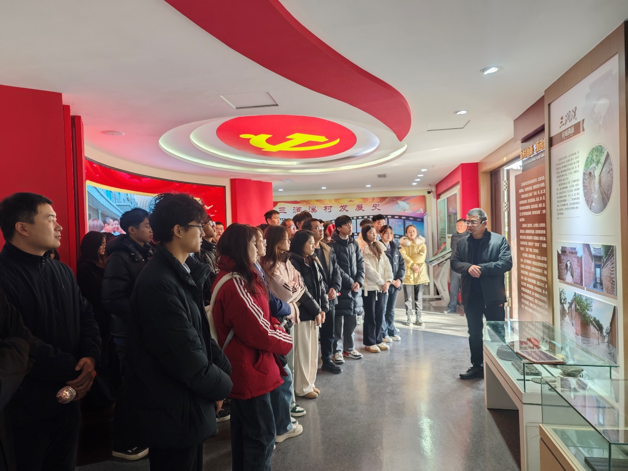 在三涧溪乡村振兴馆,培训班充分发挥学校“大思政”实践教育基地的作用,特邀党的二十大精神宣讲员黄大会为学员现场授课。黄大会结合丰富详实的展览资料,为同学们讲述三涧溪村的历史人文过往,以及在国家乡村振兴战略推动下取得巨大发展成果和荣誉;深刻领悟乡村振兴战略对农村发展的现实价值与深远意义,深化对国家发展战略的认知。