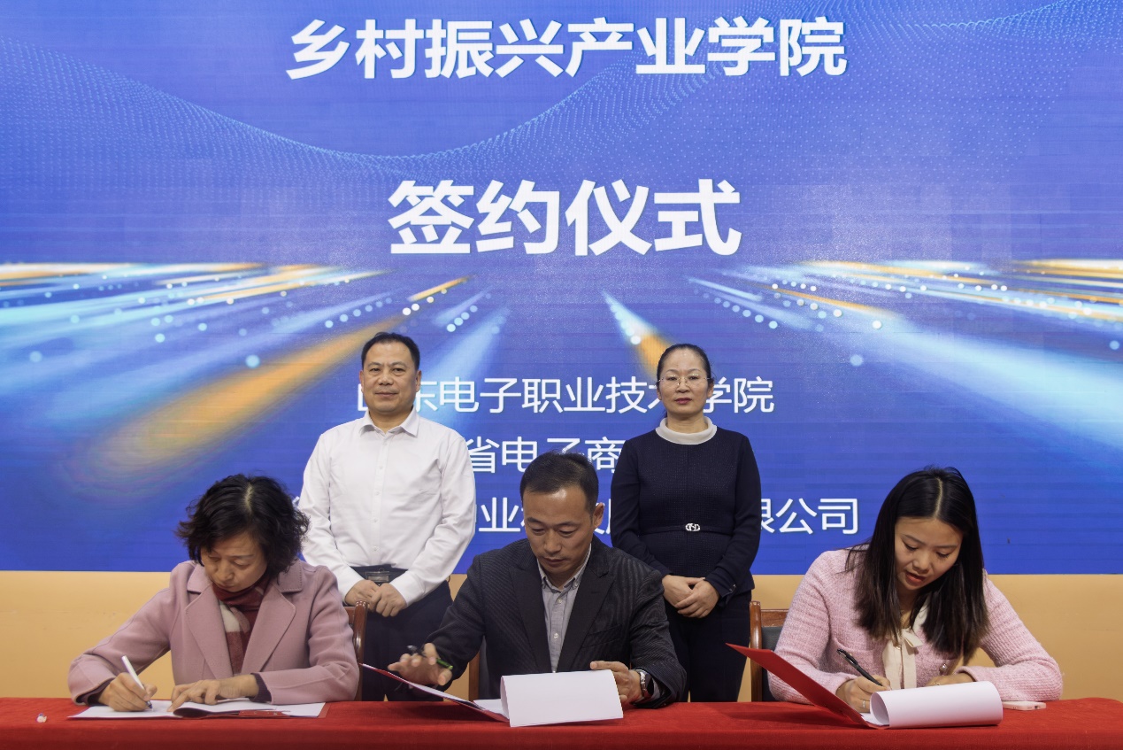 在论坛上,同期举行了乡村振兴产业学院签约仪式和成立仪式,学校与山东省电子商务协会、淄博禾丰种业科技股份有限公司合作开展“1+1+1+N”模式的乡村振兴工作。与会领导、专家、嘉宾和200多名师生共同见证了学校乡村振兴产业学院的正式成立,标志着学校和各方携手在乡村振兴工作中的合作迈出了更坚实的步伐。