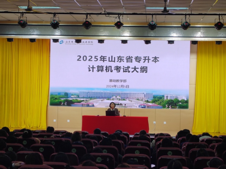 为更好地满足我校学生专升本升学需求,提高对考试政策和最新考试大纲的理解与把握,12月5日,基础教学部在学术报告厅组织开展2025年山东省专升本考试政策和考试大纲解读专题讲座,来自七个二级学院的350余名师生参加讲座。