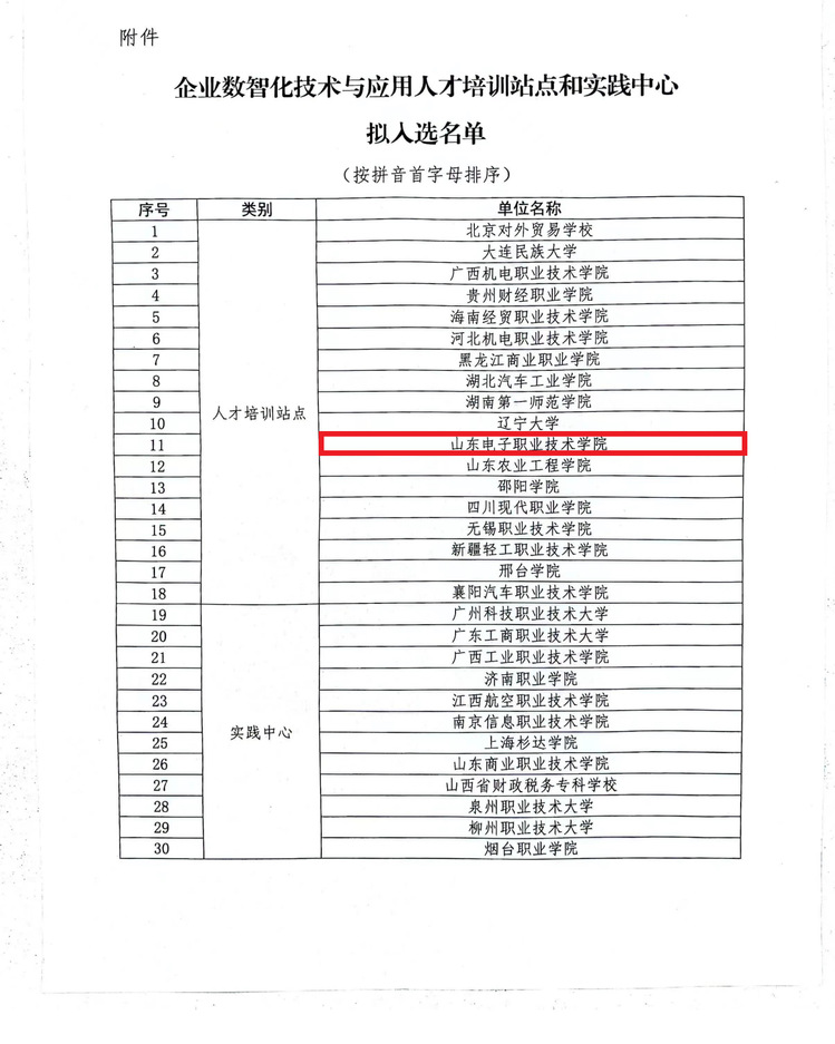 近日,工业和信息化部教育与考试中心正式发布《关于“企业数智化技术与应用人才培养专项行动”培训站点和实践中心人选名单的公示》。经过严格评审,我校成功入选“企业数智化技术与应用人才培训站点”。