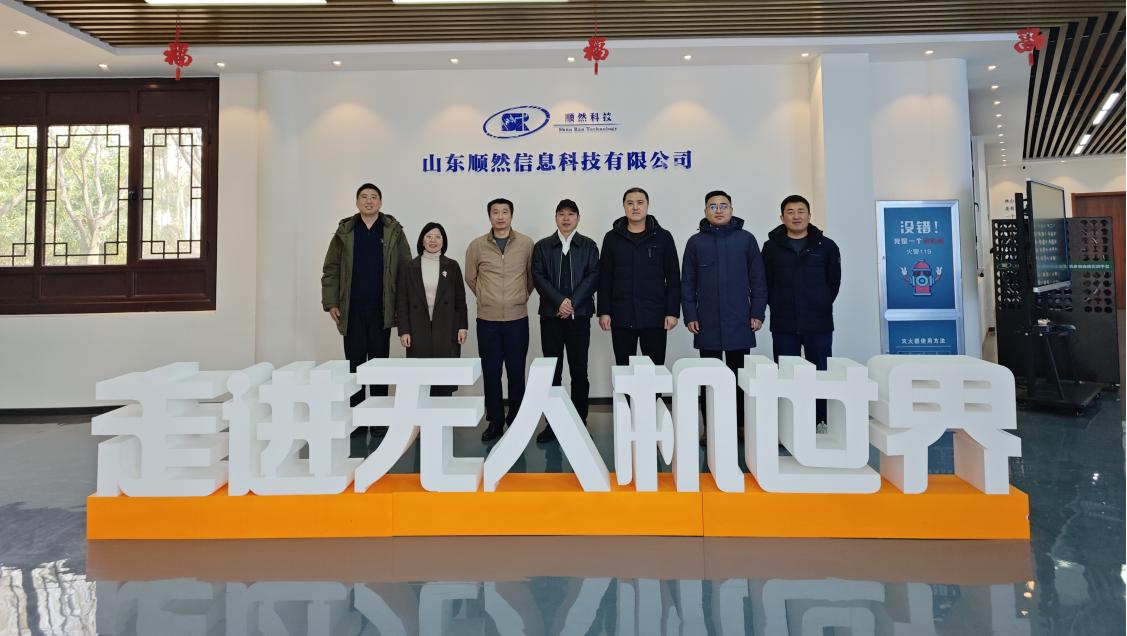 2025年 2月11日,物联网与智能控制学院相关教师与山东省信息技术产业研究院程伟主任、山东省无人机产业联盟王亮主任前往山东顺然信息科技有限公司无人机培训基地调研。