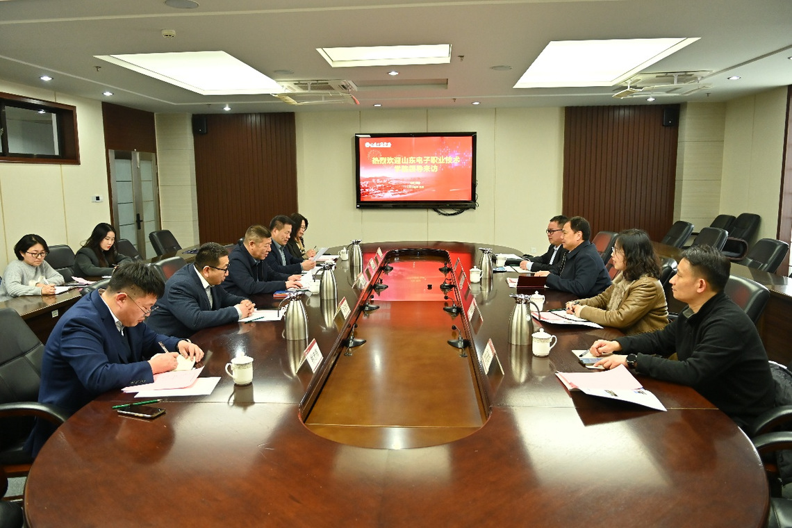 3月4日,山东电子职业技术学院院长张建臣率队前往山东工商学院,就学科建设、人才培养、产教融合等多个重要领域开展调研交流活动。山东工商学院党委副书记、校长陶虎,党委委员、副校长李希亮,以及教务处、信息与电子工程学院等相关部门负责人参加交流活动。