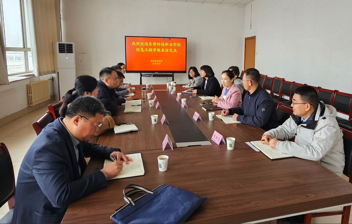 3月7日,东营科技职业学院信息工程学院到我校数字安全学院访问交流,双方在综合楼510会议室举办交流活动。此次访问交流旨在加强两校之间的合作与沟通,推动职业教育高质量发展。