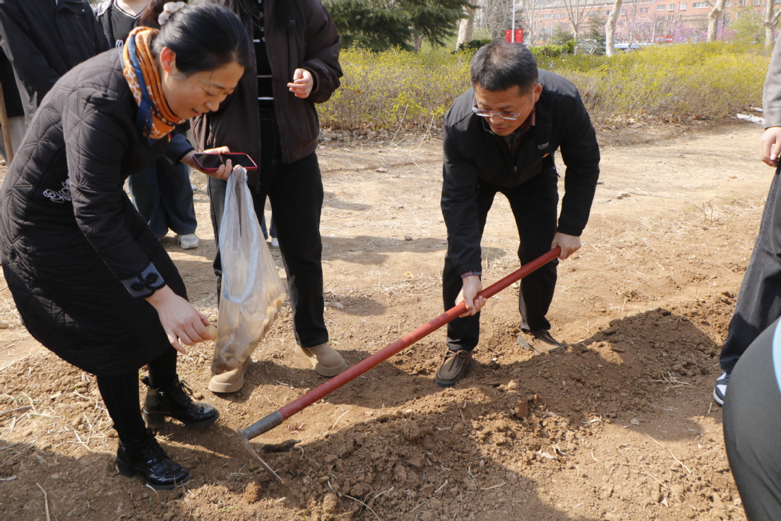 活动现场,大家按照翻土-起垄-播种-覆土-浇灌的标准化流程开展劳作。数字创意学院学生劳动教育负责人现场示范马铃薯种植技术要点。师生分工协作,有的挥锄翻土,有的弯腰播种,有的提桶浇灌,在劳动中感悟“一粥一饭当思来之不易”的真谛。现场师生经过近两个小时的集体劳动,近200平的责任田全部完成播种,为校园增添了一抹新绿,并深切体会了农业生产的辛劳。